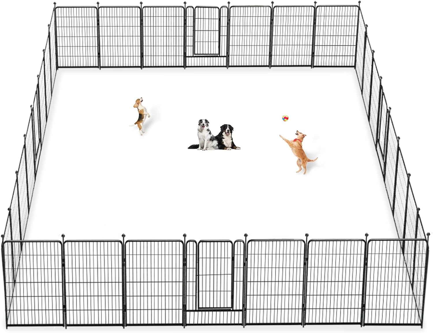 - 【Safe & Sturdy Upgraded Design】: Our puppy pen features an upgraded automatic door lock, easy to lock and unlock, prevents pets from escaping at the same time. The metal rods are designed with round ball tops for protecting you and pet claws. The improved stakes are robust and simple to insert into the ground for increased sturdy and stability