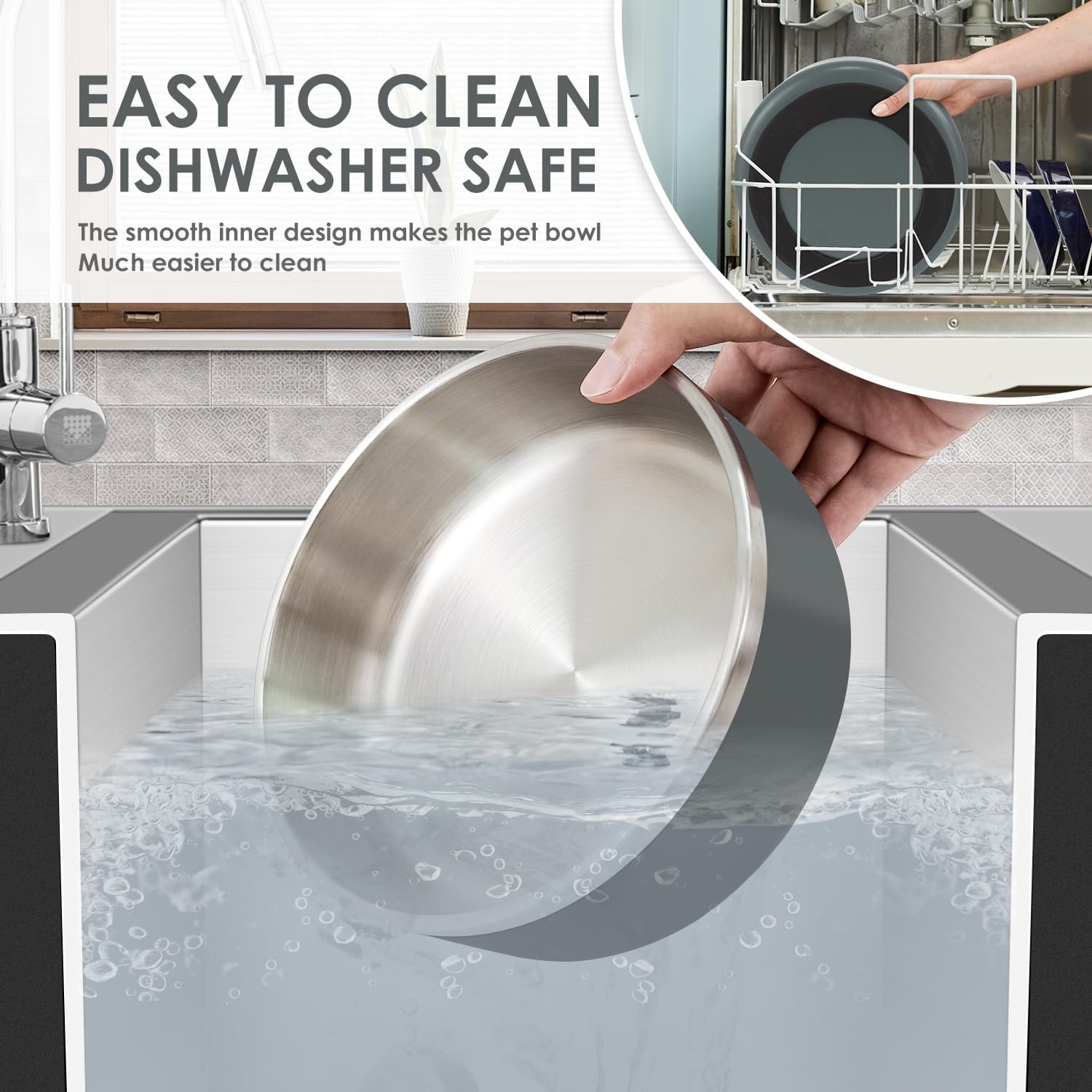 - SAFETY DESIGN-Pet feeding bowl adopts mirror polishing process, which has an elegant look and smooth touch. The flat edges will not hurt the dog's tongue, rust-proof and easy to clean.
