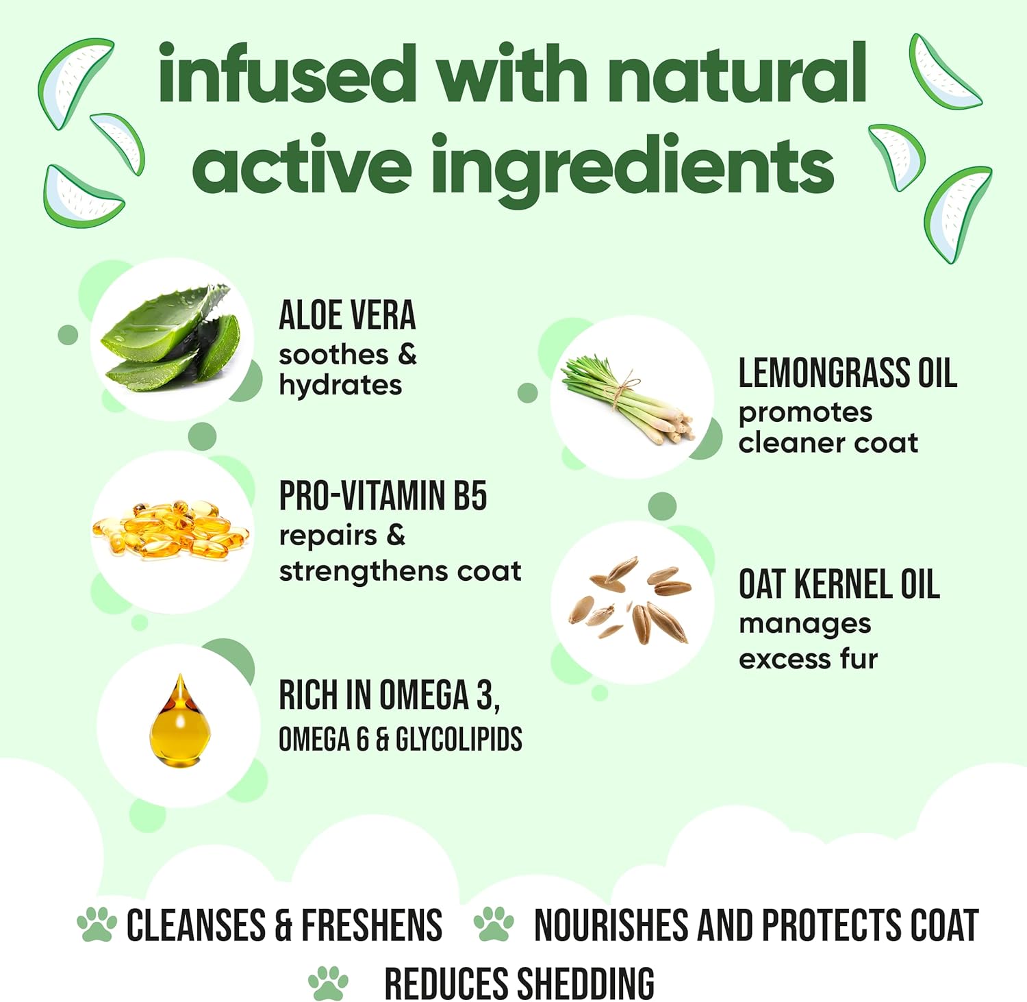 - Product Benefits : Helps minimize shedding, promotes healthy skin, and nourishes the coat with a blend of omega 3 & 6, glycolipids, aloe vera, lemongrass, and pro-vitamin B5. Helps minimize shedding, promotes healthy skin, and nourishes the coat with a blend… See more