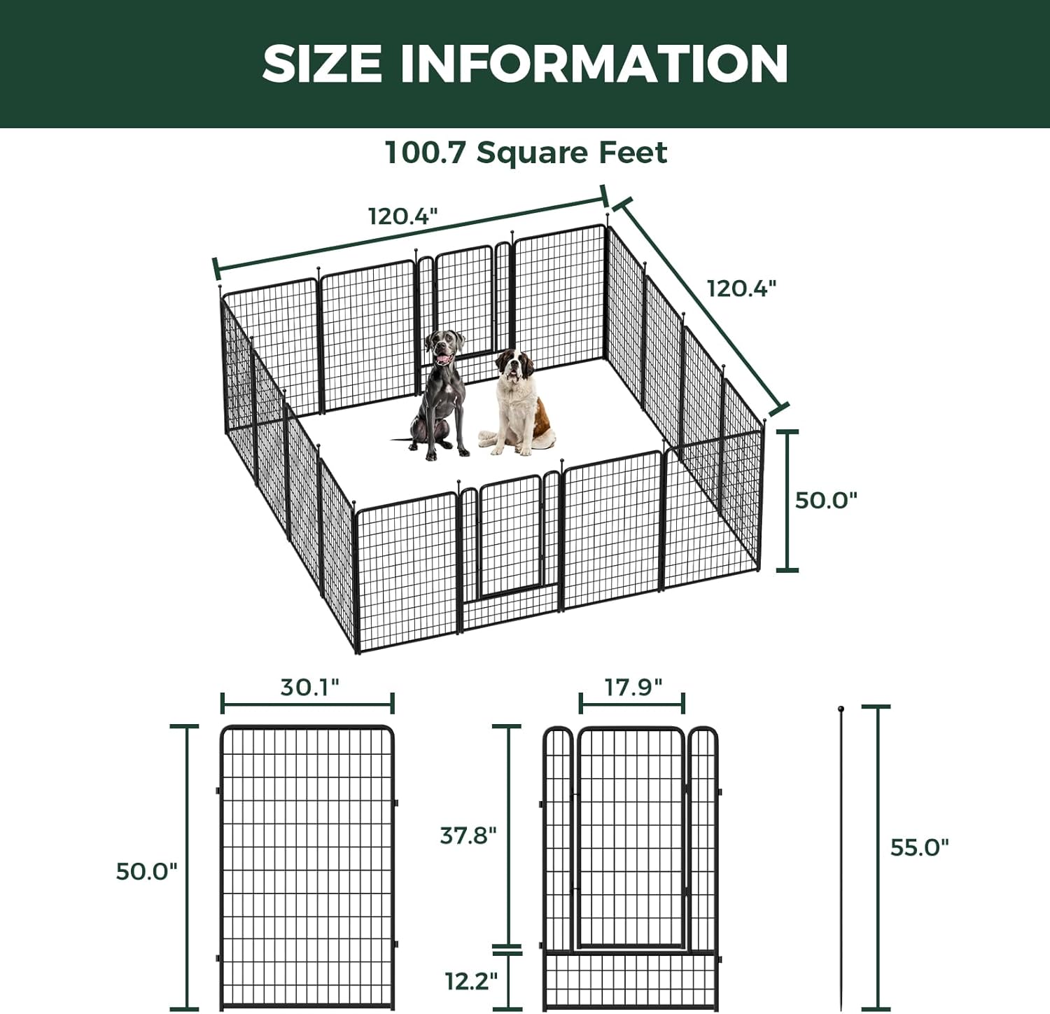 FXW Rollick Unleashed Dog Playpen for Indoor, Yard, RV Camping, 50 inch 16 Panels for Large Dogs, Black│Patented
