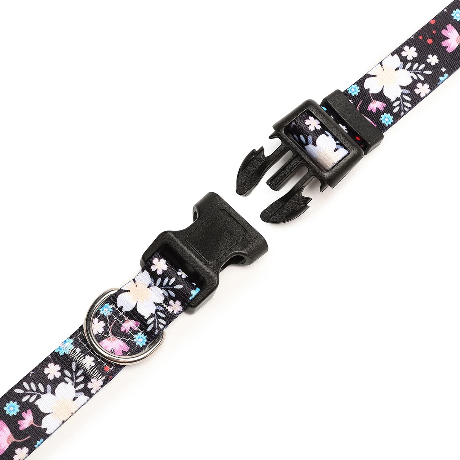 Mercano Adjustable Dog Collar - Special Design Patterns, Soft Nylon Comfortable Sturdy Pet Collar for Small Medium Large Dogs (M, Floral White)