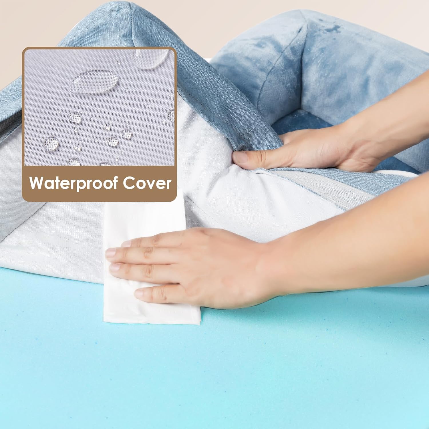 EHEYCIGA Orthopedic Dog Bed for Medium Dogs, Waterproof Memory Foam Medium Dog Beds with Sides, Non-Slip Bottom and Egg-Crate Foam Pet Couch Bed with Washable Removable Cover, Washed Blue
