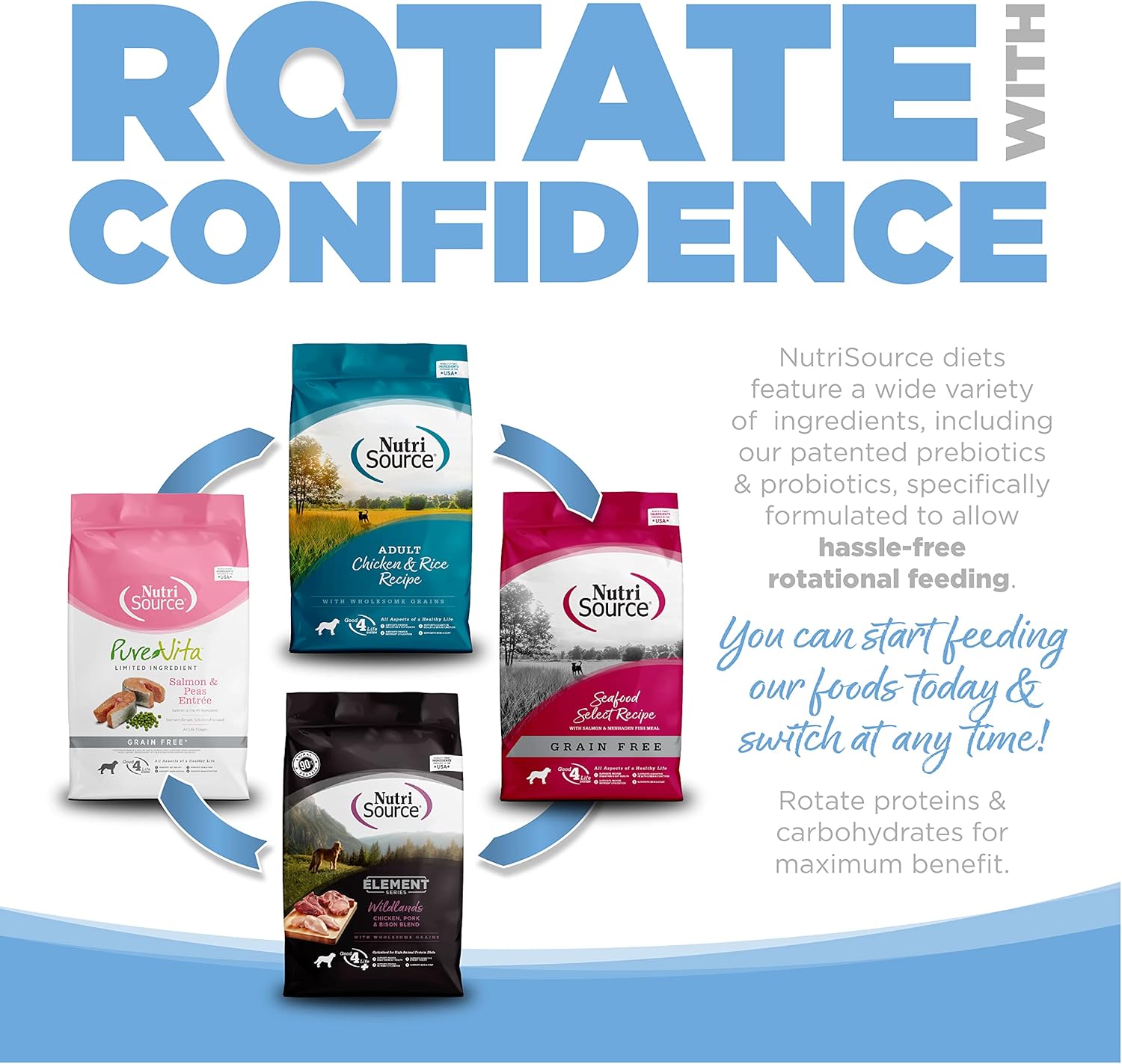 - As a member of our grain inclusive series, NutriSource Trout and Rice Dry Dog Food is formulated to meet AAFCO guidelines for all lifestages