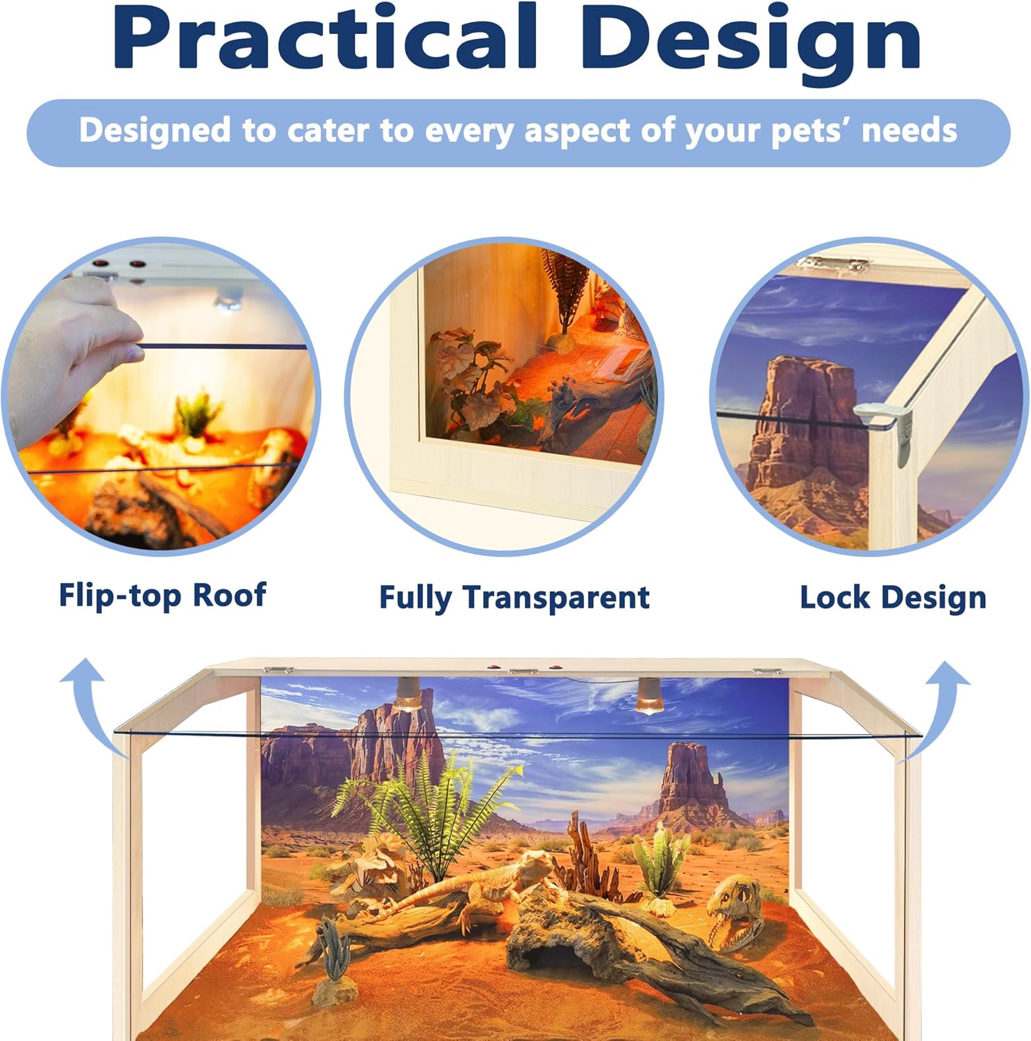 - 【Superb Reptile Habitat】Designed for reptile lovers, our enclosure offers spacious interiors for your reptiles to roam freely. The front acrylic panel guarantees crystal-clear visibility, while top and side vents ensure optimal airflow. Please note: This habitat is not suitable for water storage. Available in 4 sizes to suit your needs!