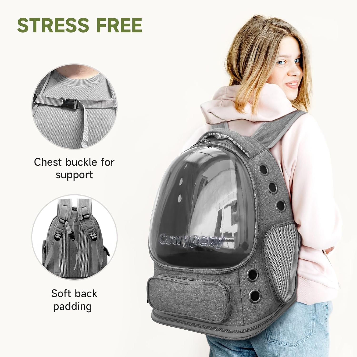 - [VENTILATED BACKPACK]: With a breathable bubble window in the front, this clear pet backpack allows cats to enjoy the sun without feeling stuffy, there are exits on the side for pets to enter and exit, and you can also pet your kitten, which is the best ventilation in a space pack ever.