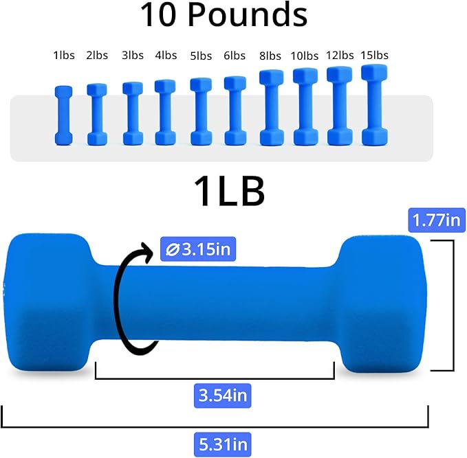 Portzon Weights Dumbbells 10 Colors Options Compatible with Set of 2 Neoprene Dumbbells Set,1-15 LB, Anti-Slip, Anti-roll, Hex Shape for Shoulder,Neck, and Hand Training for Seniors