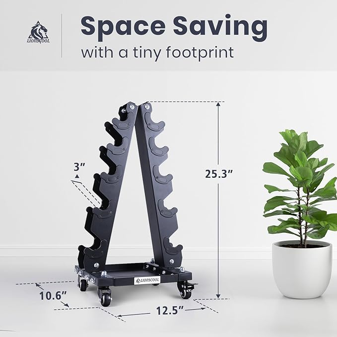 LIONSCOOL Premium Solid Steel Dumbbell Rack Stand Only, A-Frame Portable Weight Storage Organizer with Optional Tray and Wheels, Perfect for Home Gym Fitness Storage (200LBS/300LBS/700LBS Weight Capacity Available)