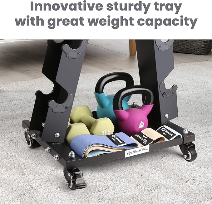 LIONSCOOL Premium Solid Steel Dumbbell Rack Stand Only, A-Frame Portable Weight Storage Organizer with Optional Tray and Wheels, Perfect for Home Gym Fitness Storage (200LBS/300LBS/700LBS Weight Capacity Available)