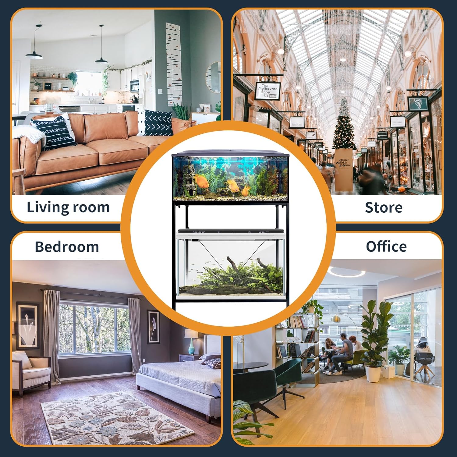 - Double-layered structure: Our Aquarium Tank features a minimalist and stylish design with a double-layered structure that meets your aquarium display needs and provides storage space for pet supplies. Alternatively, you can use it to hold two tanks, bird cages, or other pet habitats.