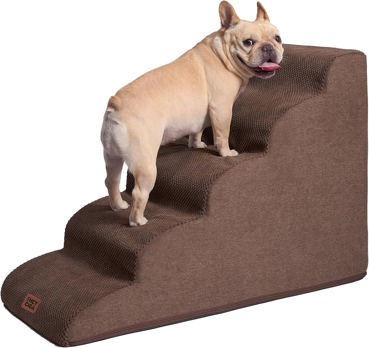 - MULTIPLE STEP SIZES - This dog stair has 2 steps, 3 steps, 4 steps and 5 steps to choose. Our 2-step stairs fits for chair/sofa/bed up to 13inch. 3-step stairs fits for chair/sofa/bed up to 17inch. 4-step stairs fits for chair/sofa/bed up to 21inch. And 5-step stairs fits for chair/sofa/bed up to 24inch.