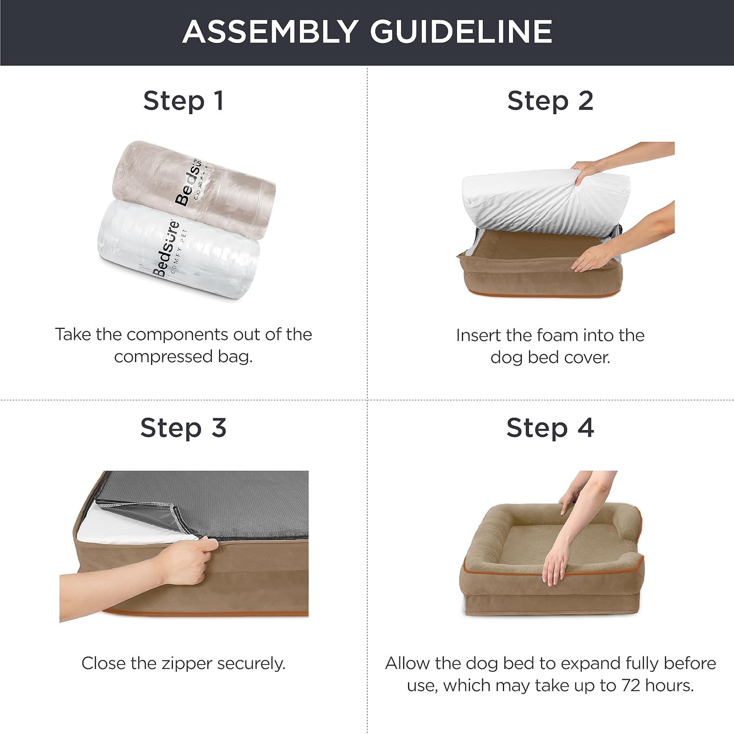 Bedsure L Plus Orthopedic Dog Bed for Large Dogs - Washable Dog Cat Bed Waterproof, L Plus Big Comfort Dogs Couch Sofa with Washable Removable Cover, Pet Bed with Nonskid Bottom, Hazel, 38"