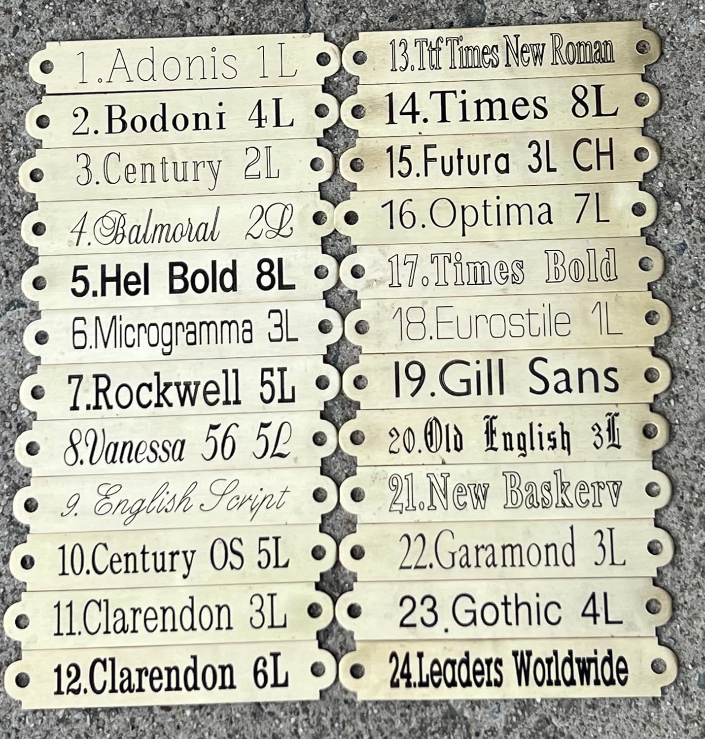 - Please Note - for font ,#4 (Balmoral) #8 (Vanessa) or #9 (English Script) it is highly reccomended to not use ALL capital letters