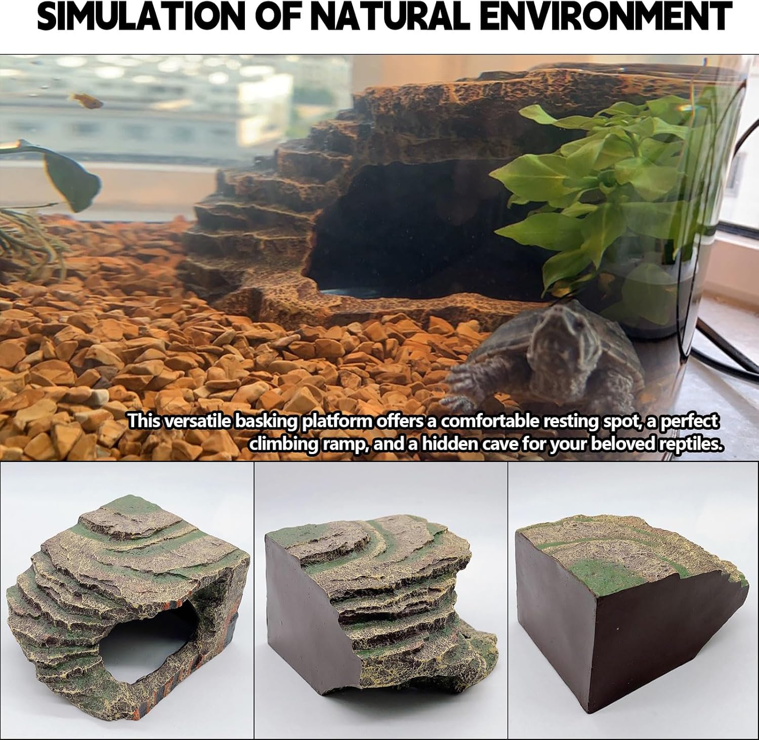 - 【SIMULATED NATURAL ENVIRONMENT】Decoration that closely mimics true rock found in nature. Offers the natural environment feeling.