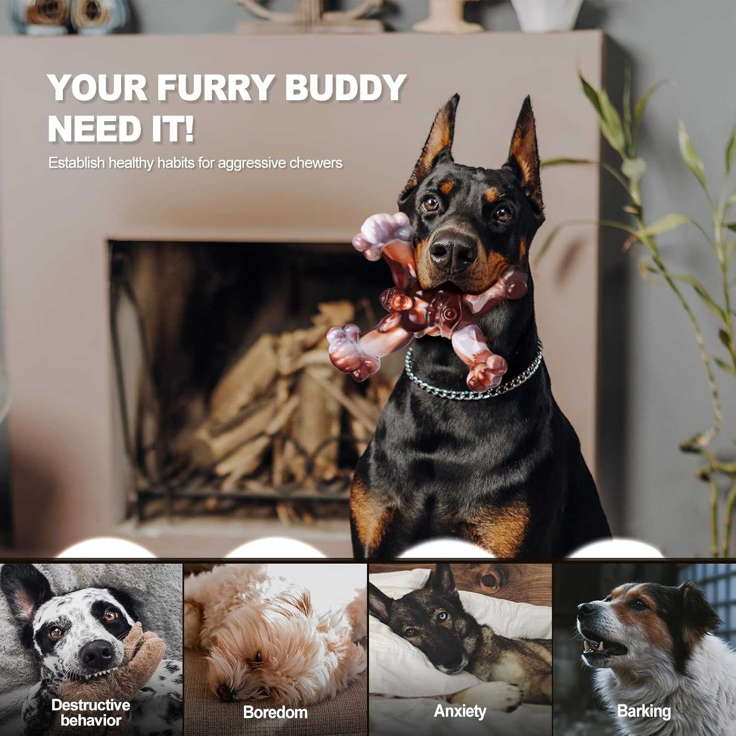 - Durable Dog Chew Toy: To satisfy their urge to chew and gnaw, we make large dog chew toys for aggressive chewers more bite-resistant than dog bones for aggressive chewers. The dog toys for aggressive chewers and aggressive dog chew toys went through many tests by large dogs. And they are almost such indestructible dog toys for large dogs that they can withstand the dog's long-lasting chewing. The indestructible dog toy is durable and suitable for 30-100lbs of large dogs