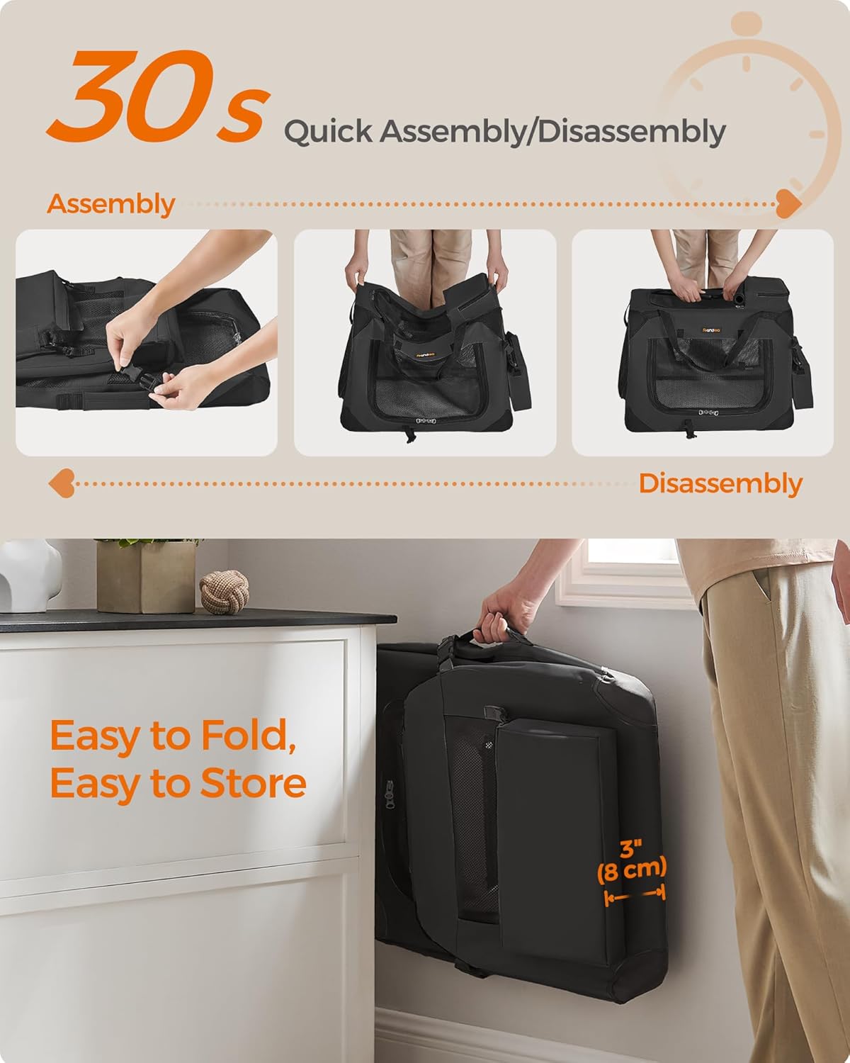 - 【ANTI-ESCAPE & STRONGER】Featuring self-locking zippers that ensure pets can't open it from the inside, the travel dog crate enhances safety while traveling. The thick steel frame and Oxford fabric are scratch- and tear-resistant for prolonged service life