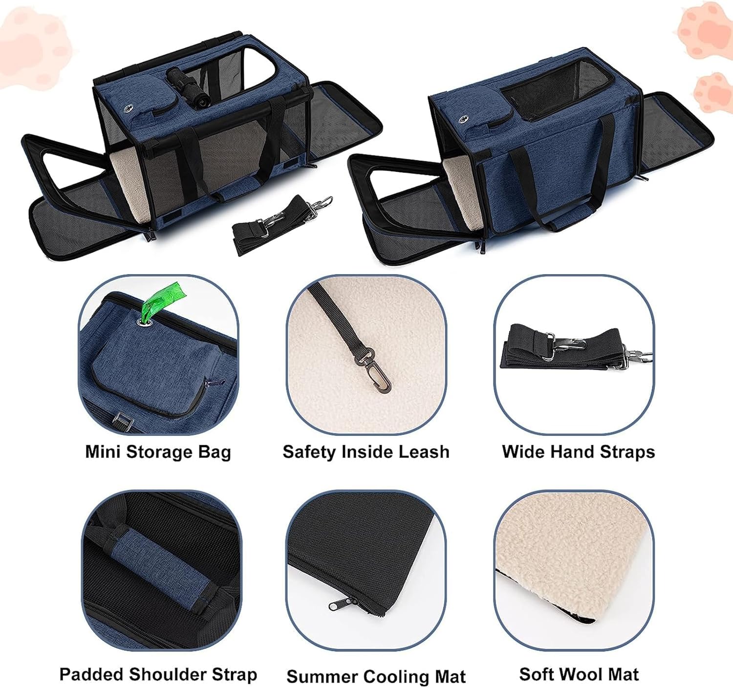 - 【Washable Liner】The large cat carrier is made from durable fabric-oxford material, and the faux lambskin liner which offers a cozy space for your pet can be removed entirely and machine-washed.