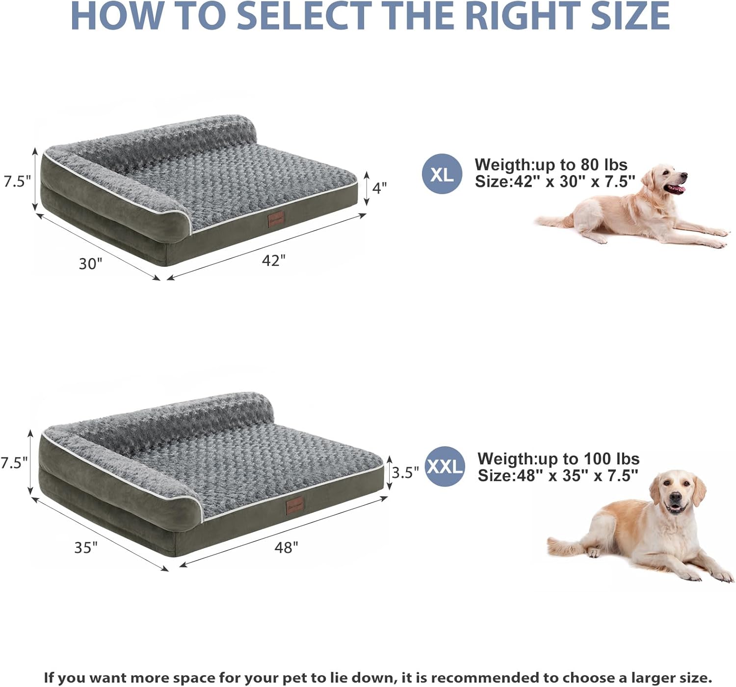 - L-SHAPED DOG BED: This XX large dog bed adopts L shaped design, the dog beds Soft and comfortable rails provide extra support for our pet's head and neck, and the dog sofa bed has no railings on two sides, providing plenty of room for pets to stretch out. The dog beds for large dogs allow pets to be more soothed and relaxed and to fall into a deep sleep.