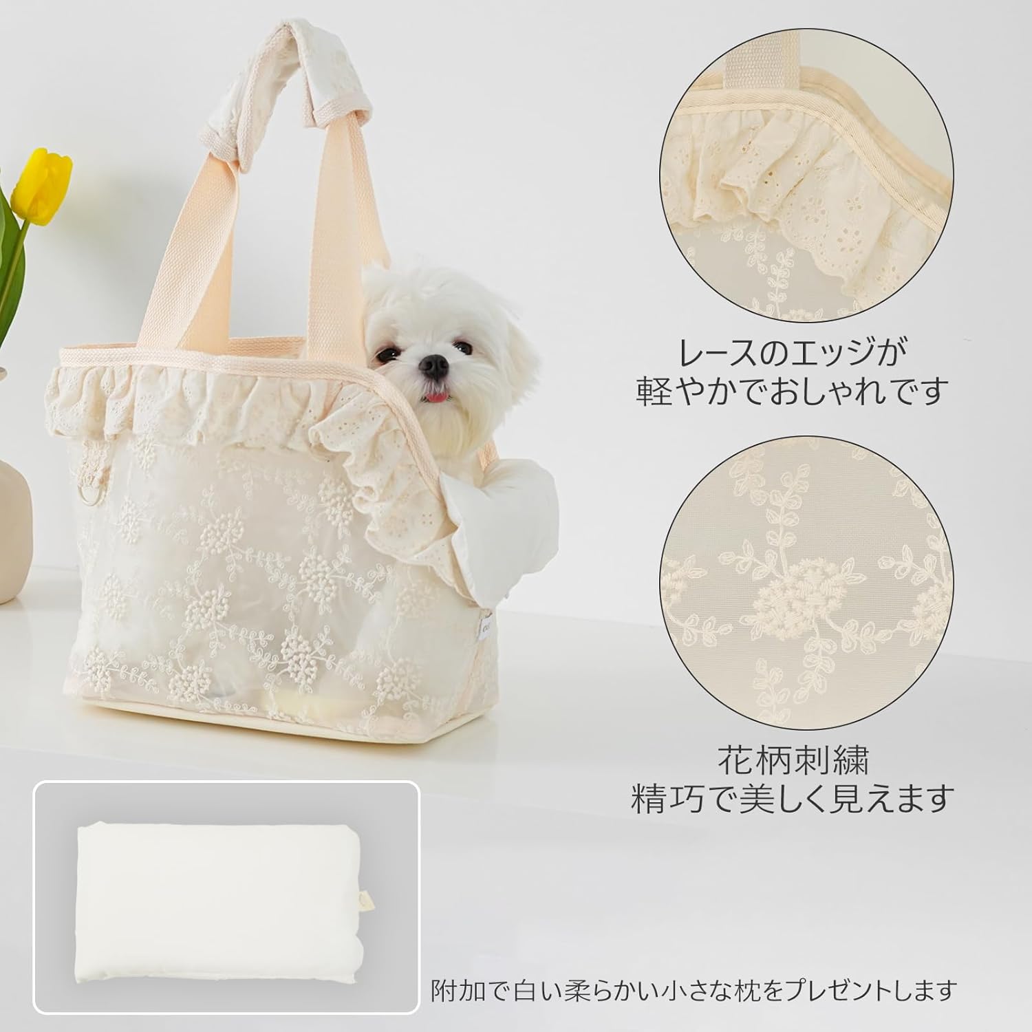 Dog Carrier for Small Dogs Rabbit cat with Lace Design, Cotton Bag, Dog Carrier Soft Sided, Collapsible Travel Puppy Carrier (Beige, 13" L x 6.7" W x 10.6" H)