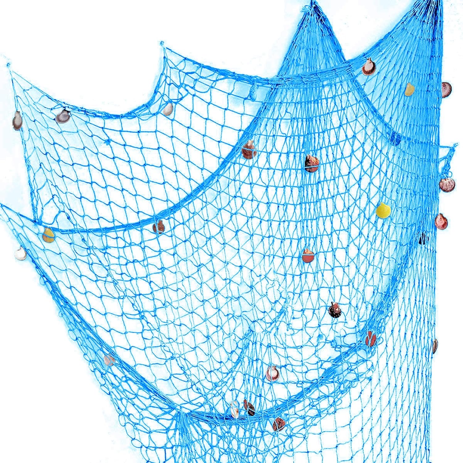 Nature Fish Net Wall Decoration with Shells, Ocean Themed Wall Hangings Fishing Net Party Decor for Pirate Party,Wedding,Photographing Decoration