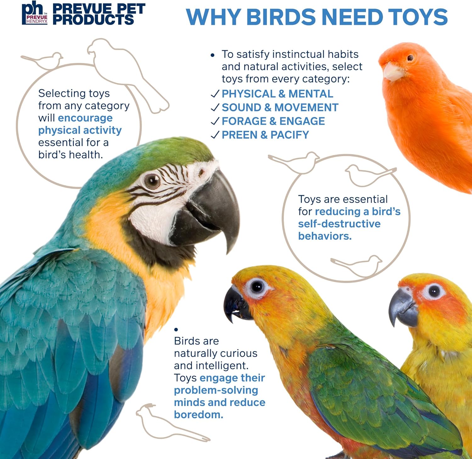 - Includes a variety of hard and soft materials to keep birds mentally and physically engaged and stimulated