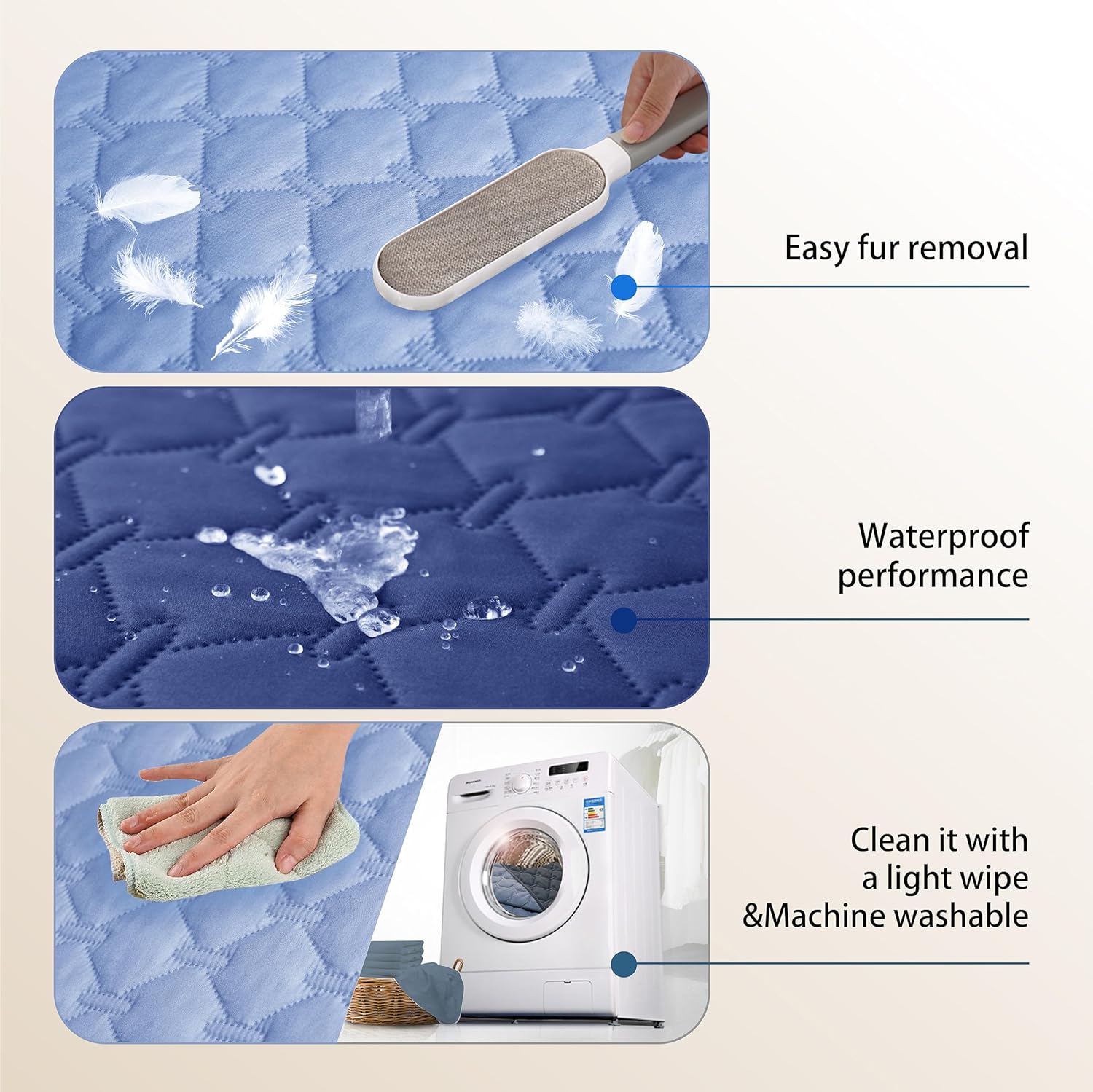 gogobunny 100% Double Sided Waterproof Dog Blanket Soft Pet Bed Cover Reversible Protect Furniture Couch Sofa Car for Puppy Large Dog Cat (Dark Navy/Light Navy, 82x82 Inch (Pack of 1))
