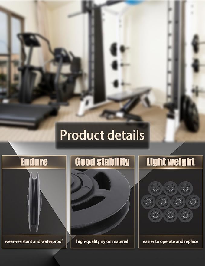 - High Quality Nilon And Iron Core Material: The gym pulley are made of high quality nylon and iron core, which has strong wear resistance and is an ideal replacement part for fitness equipment, so you can continue to use your fitness equipment with confidence and prolong the life of your fitness equipment.