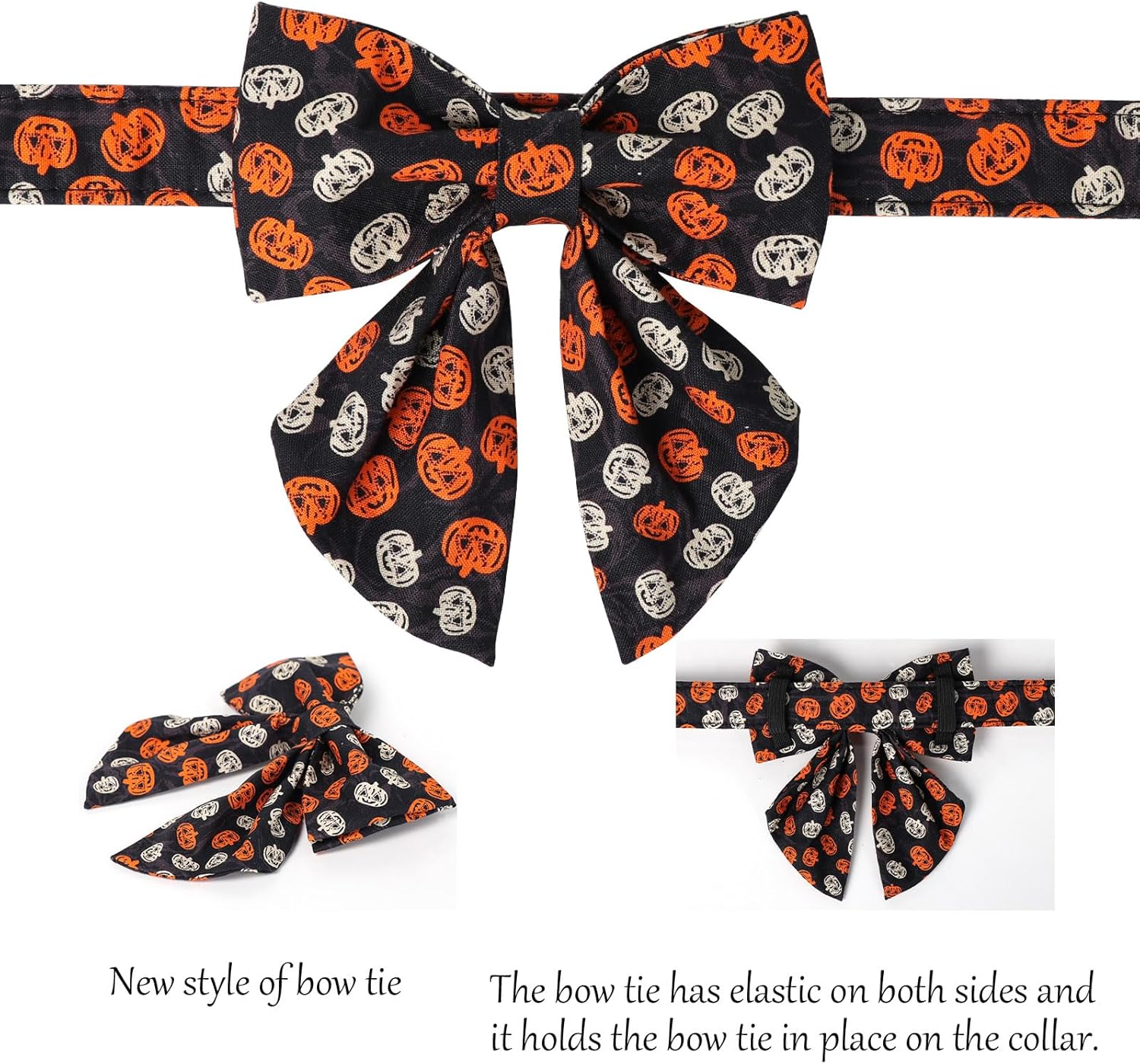Lionet Paws Halloween Dog Collar with Bowtie - Cute Cotton Adjustable Black Bowtie Dog Collar with Metal Buckle for Small Medium Large Dog Girl Boy Gift, XXS, Neck 7-11in