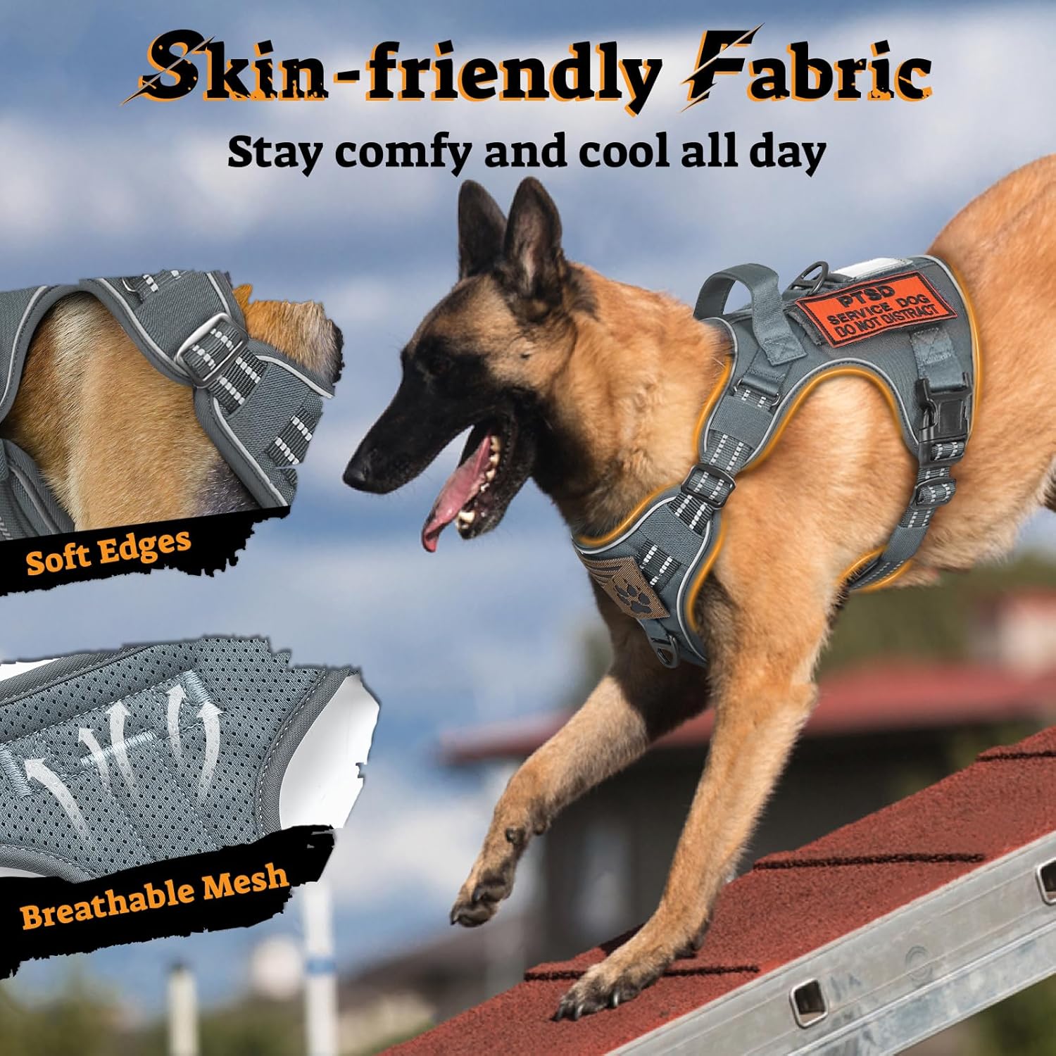 - No-Pull and Control: The harness has 18 leash attachment clips, including a metal front clip for no-pull running and a daily back clip for casual jogging. The large padded handle offers comfortable real-time control in an emergency