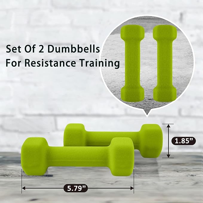 Weights Dumbbells set of 2 Fitness for Man Woman Home Gym Health Exercise 2LB Green Rubber Hex Dumb Bells