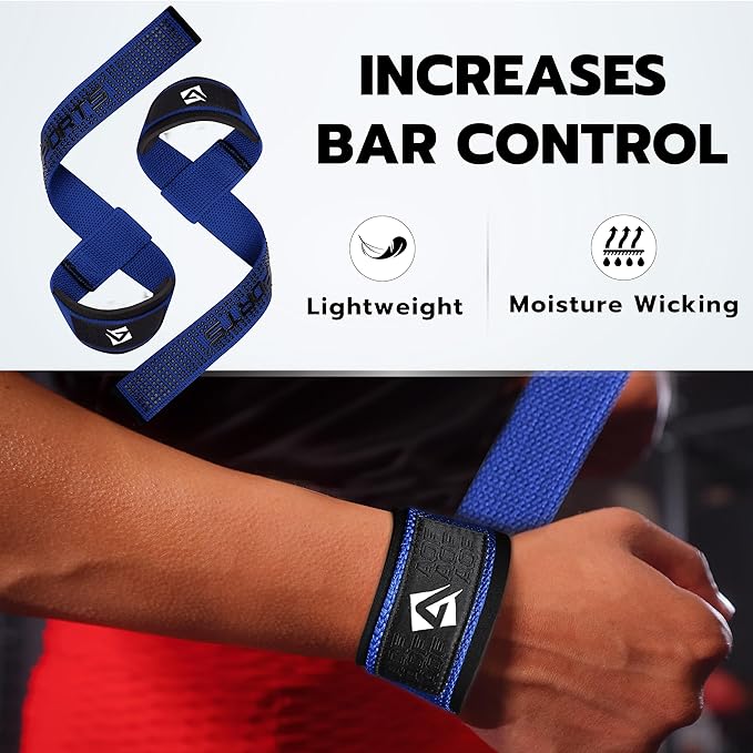 Lifting Wrist Straps for Weightlifting, Powerlifting & Deadlifts – 23” Neoprene Padded Cotton Straps for Strength Training & Gym Workouts - Maximum Grip Support for Men & Women