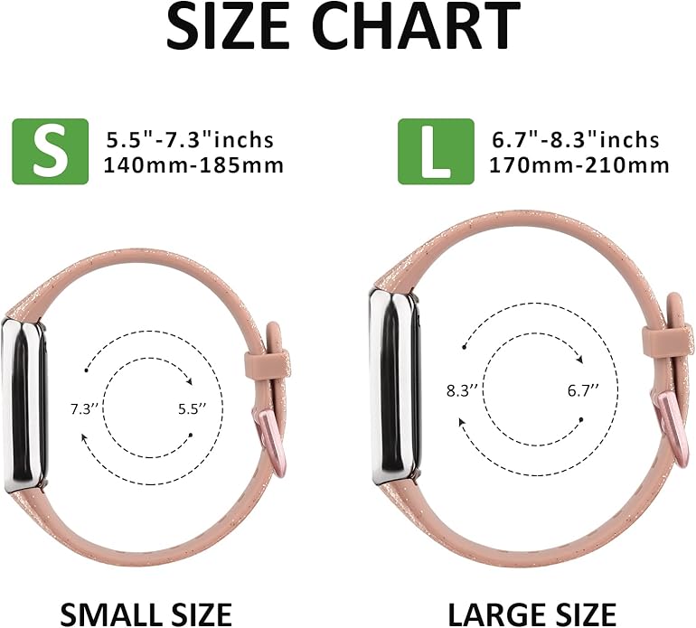 - 【Small & Large Sizes & Unique Colors Available】: Small Size for 5.5" - 7.3" (140mm-185mm) wrist, Large Size for 6.7" -8.3" (170mm-210mm) wrist. AK Unique Colors Smoke Violet, Milk Tea, Starlight will give your fitbit luxe tracker a personalized and fashionable look. Have it and you will be the brightest star in the crowd.