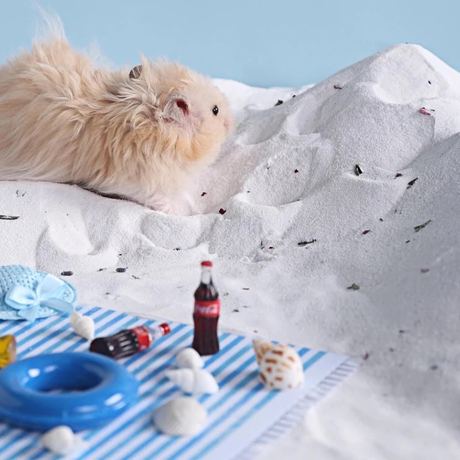 - Cleanliness & Grooming:Hamsters adore dust baths to keep their fur clean and free from excess oils, promoting healthy grooming habits and preventing skin issues.Regular sand baths can help prevent the fur from becoming greasy or smelly.