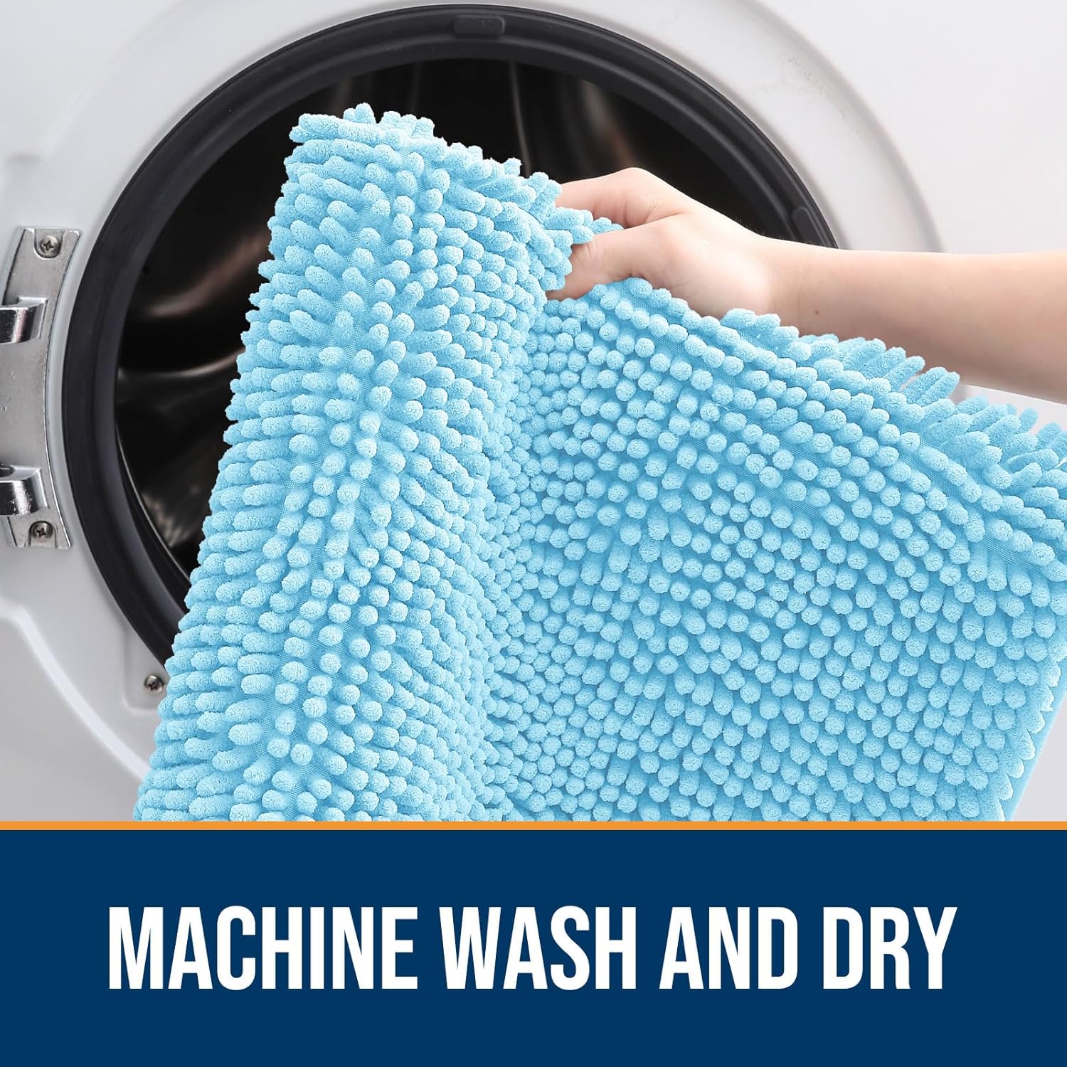 OLANLY Dog Door Mat for Muddy Paws 30x20, Absorbs Moisture and Dirt, Absorbent Non-Slip Washable Doormat, Quick Dry Chenille Mud Mat for Dogs, Entry Indoor Entryway Carpet for Inside Floor, Blue