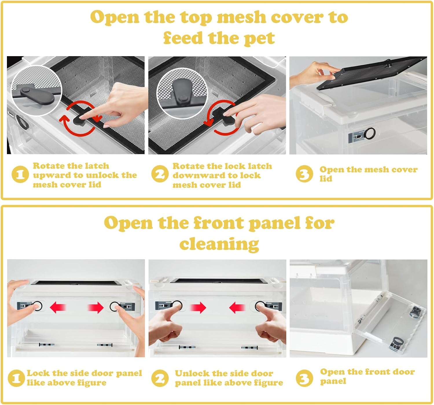 - Quality Material:Reptile feeding box is made of high quality plastic material,safe and sturdy,good transparency,durable,and not easy to break even if it is bitten or scratched by reptile,cages can be used safely for a long time. for pet hatching, small pet breeding box, temporary breeding or outdoor transportation and carrying