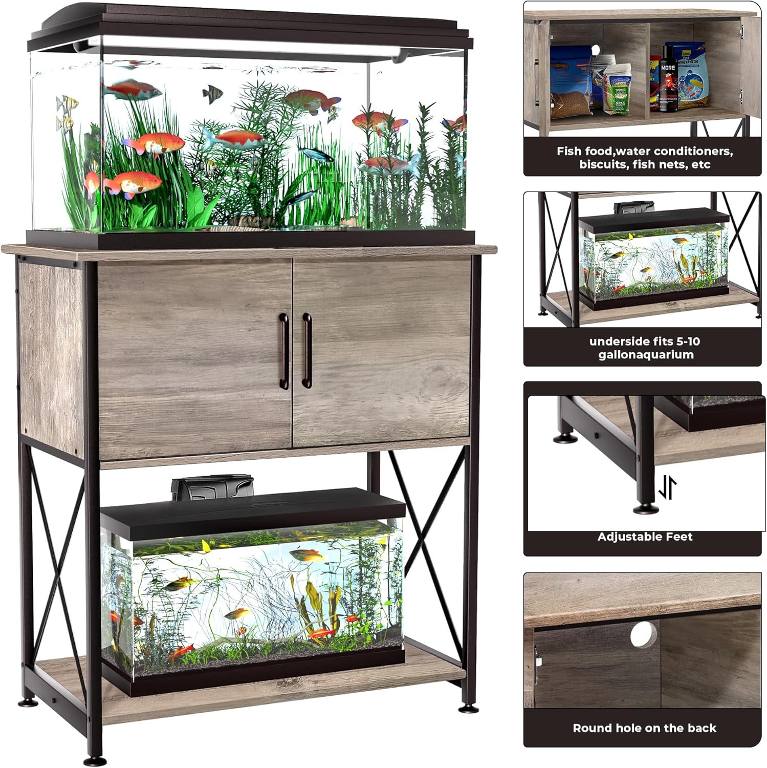 - Convenient Storage: Stand features a spacious storage cabinet in the middle, making it easy to store fish food, nets, gravel cleaning agents, and more. The storage cabinet keeps your fish tank area clean and tidy and allows you to access the items you need easily.