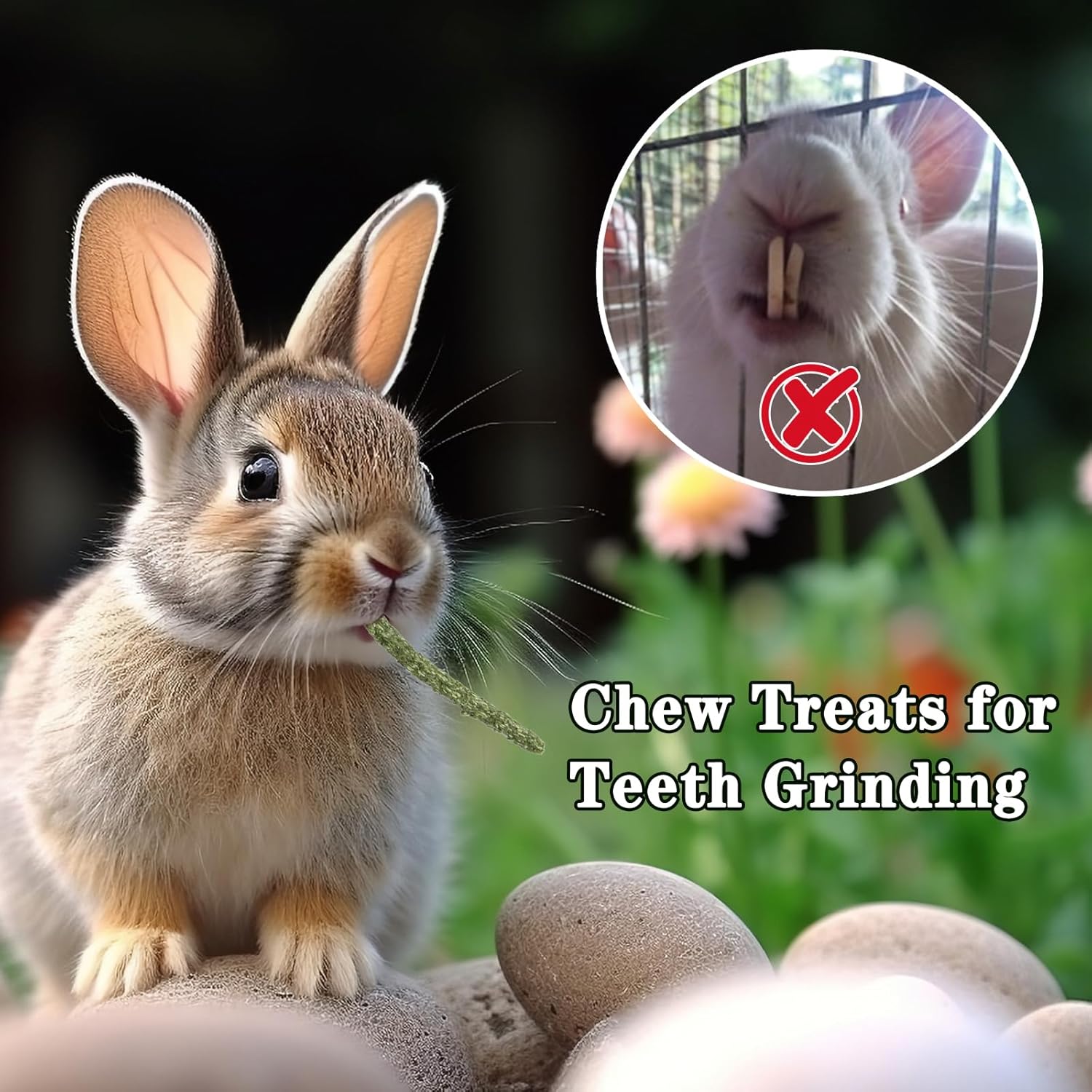 - 【Grinding Teeth】- Hard baked timothy hay pellets, help your rabbits grind incisors. Supporting dental health through natural chewing activity. Thin and long appearance, perfect size for the small mouth of your pets, grind teeth while avoiding bites itself.