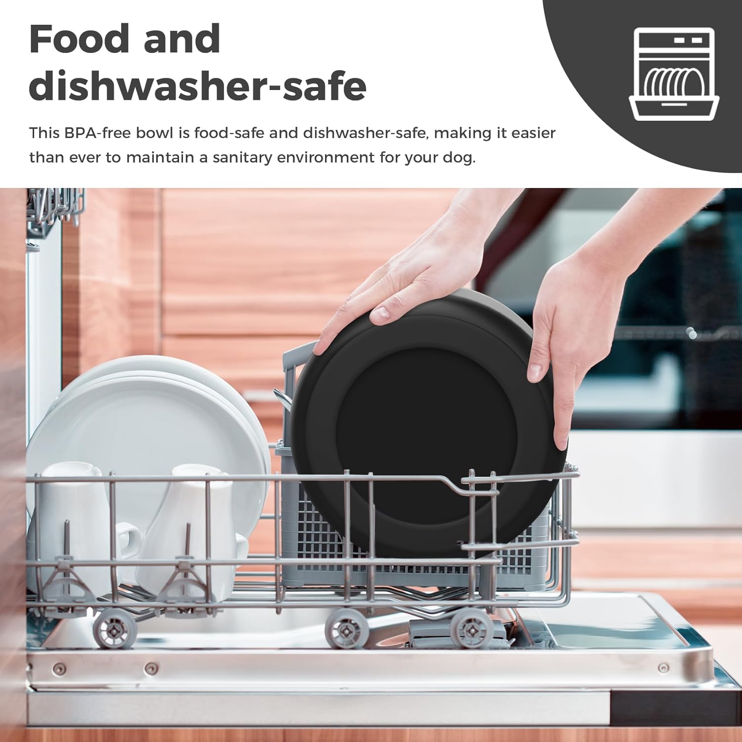 Dog Bowl, Stainless Steel Dog Food and Water Bowl with Non Slip Quiet Bottom, Easy to Clean, Dishwasher Safe, 64oz, Black