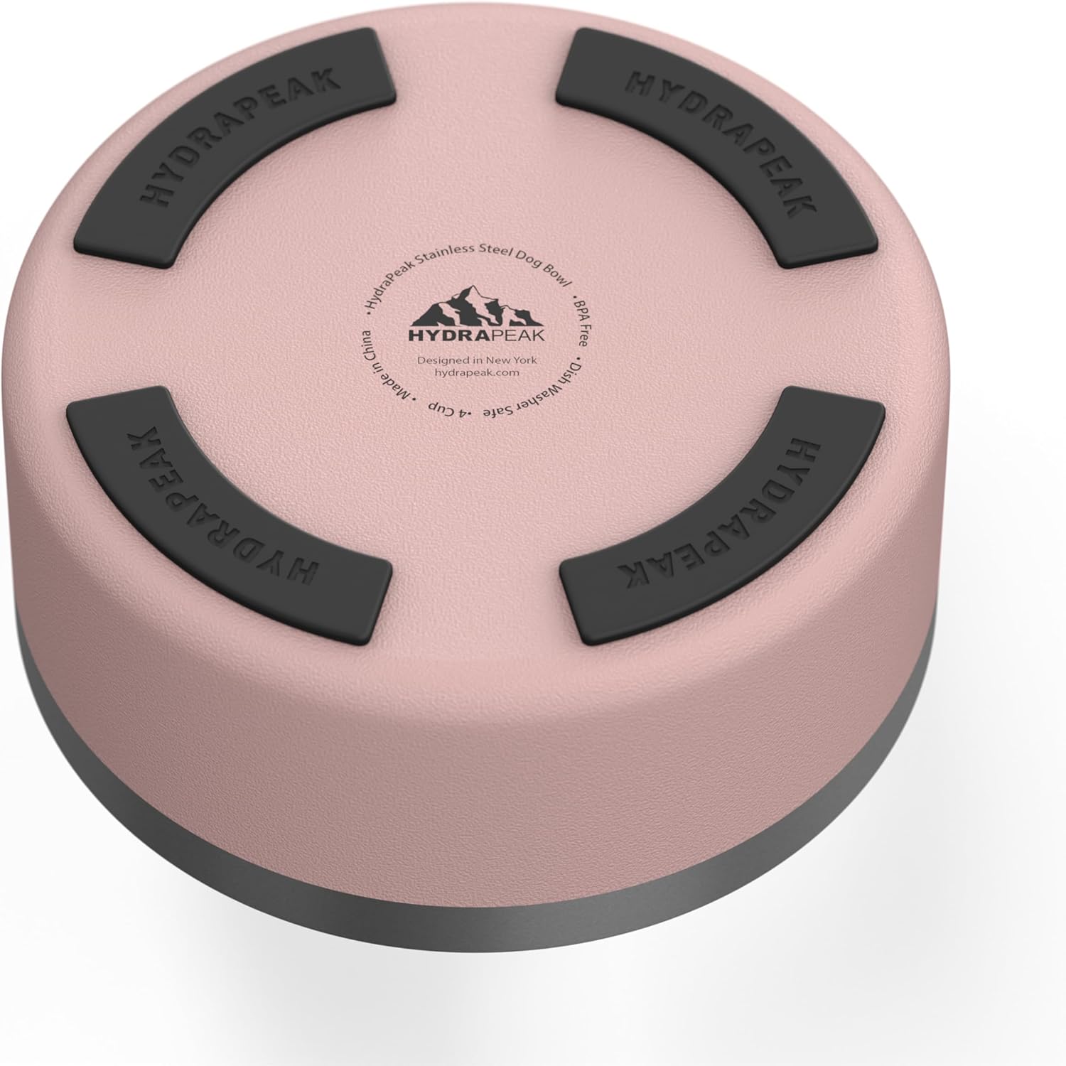 Hydrapeak Dog Bowl; Non Slip Stainless Steel; Water and Food Dish; Large Sized and Small Dogs; 32oz 64oz; Multiple Sizes; 4 Cup | Rosewood
