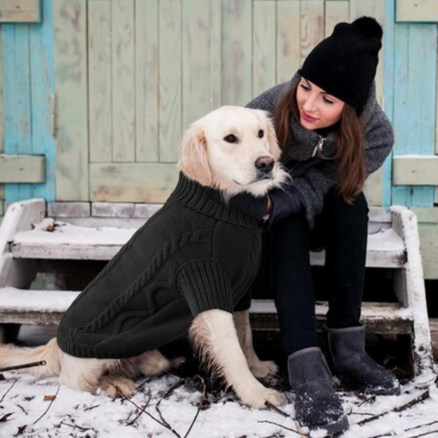 - THICK & WARM KNIT SWEATER: The dog's turtleneck pullover sweater is made of 100% polyester that is comfortable, soft, warm and easy to care. The cable knit sweater is the cute winter clothes for your dog.