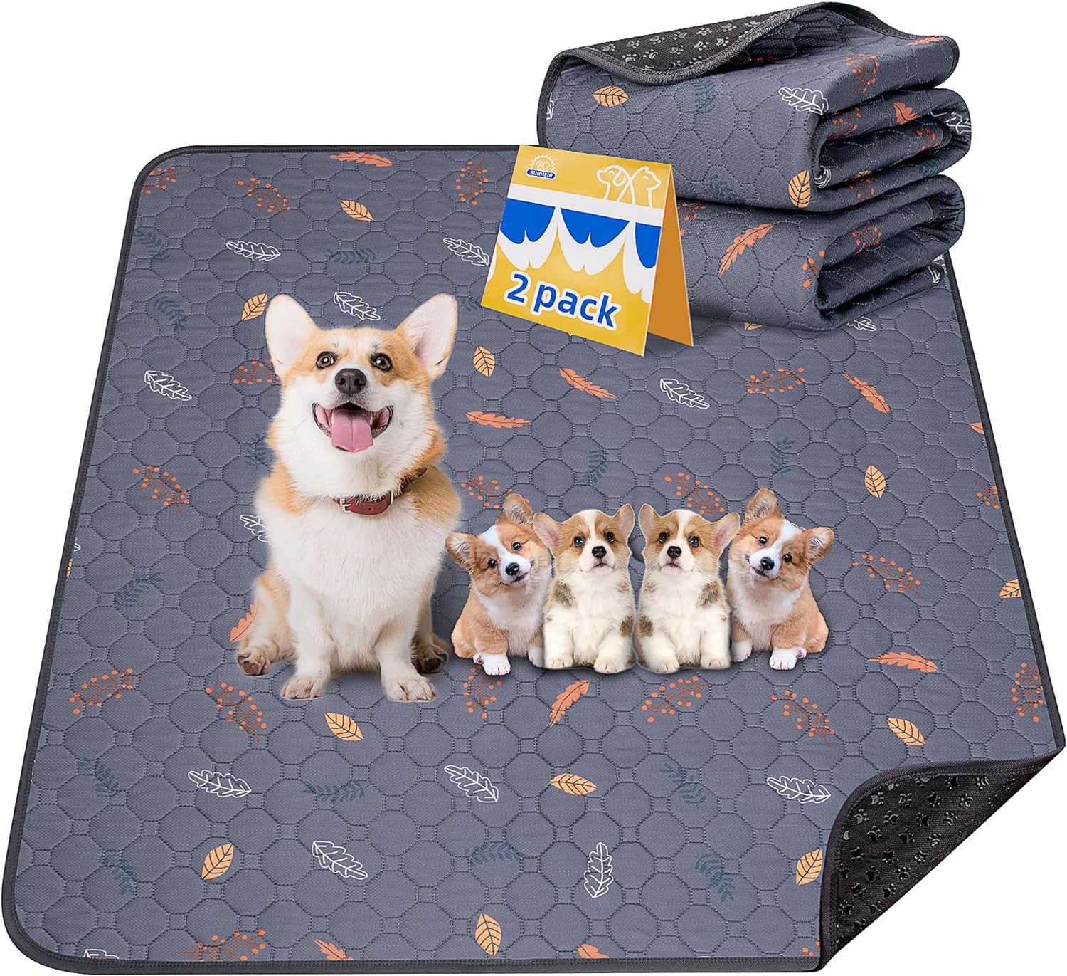 Sunheir 2-Pack Extra Large Reusable Dog Mat for Floor, Dog Playpen, Non-Slip Waterproof Pee Pads, Super Absorbent Washable Pee Pads for Dogs, Pet Whelping Pads, Crate, Potty Training - 36" x 48"