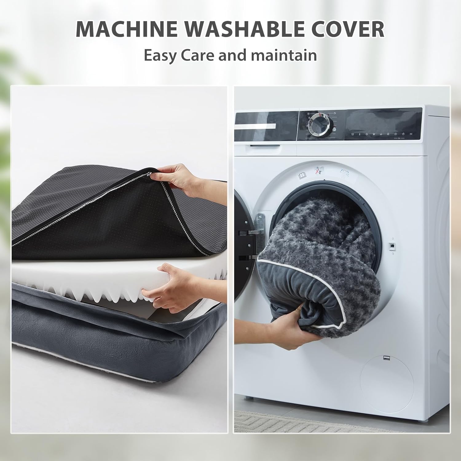 • ORTHOPEDIC FOAM DOG BED: This dog couch is made of orthopedic egg foam, the thick dog bed helps cushion pressure points, and supports the dog's joints and muscles evenly. Therefore the orthopedic dog beds can ease the discomfort of anxious older dogs, and dogs with arthritis and promote better sleep at night.