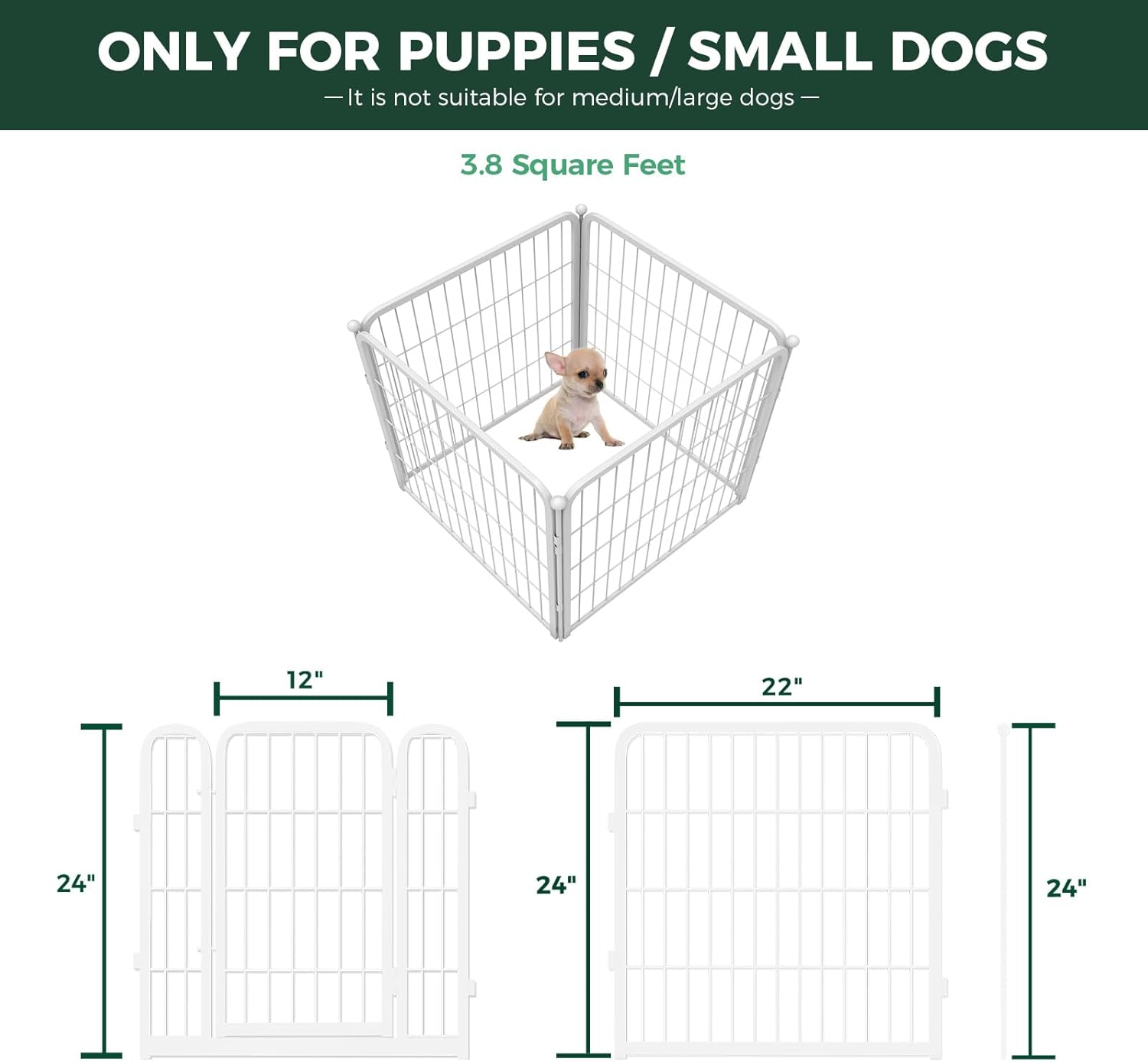 FXW Homeplus Unleashed Indoor Dog Playpen - Stress-Free and Safe Play, Heavy Duty 24 Inch 4 Wire Panels Dog Pen for Puppy and Small Dogs, White│Patented