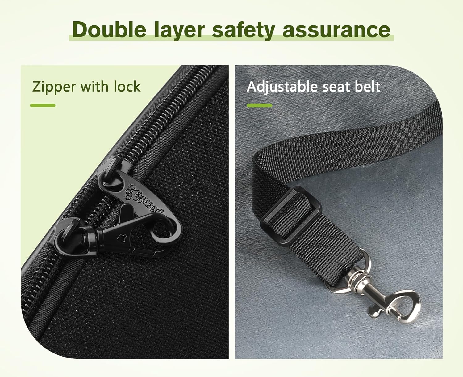 - 【SAFETY & STORAGE 】: 1, Made of high-quality Oxford Cloth, waterproof, anti-scratch, and non-irritating, let your pet breathe freely and relax. 2, Adopts lock-type zipper design to prevent the zipper from being opened by pets. Built-in retractable hook safety rope to prevent pets from escaping. 3, The pockets on both sides can store food, water bottle, poop bags, and some necessary accessories.