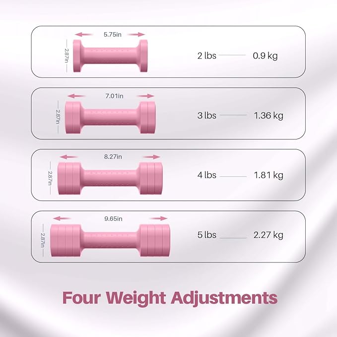 - Quick Adjustments from 2 to 5 Pounds: Zempox weights dumbbells set for women, experience effortless setup and instant weight adjustments. With the rotating mechanism, you can easily customize the weight from 2,3,4,5 pounds to match your workout intensity (A Pair 4lb 6lb 8lb 10lb)