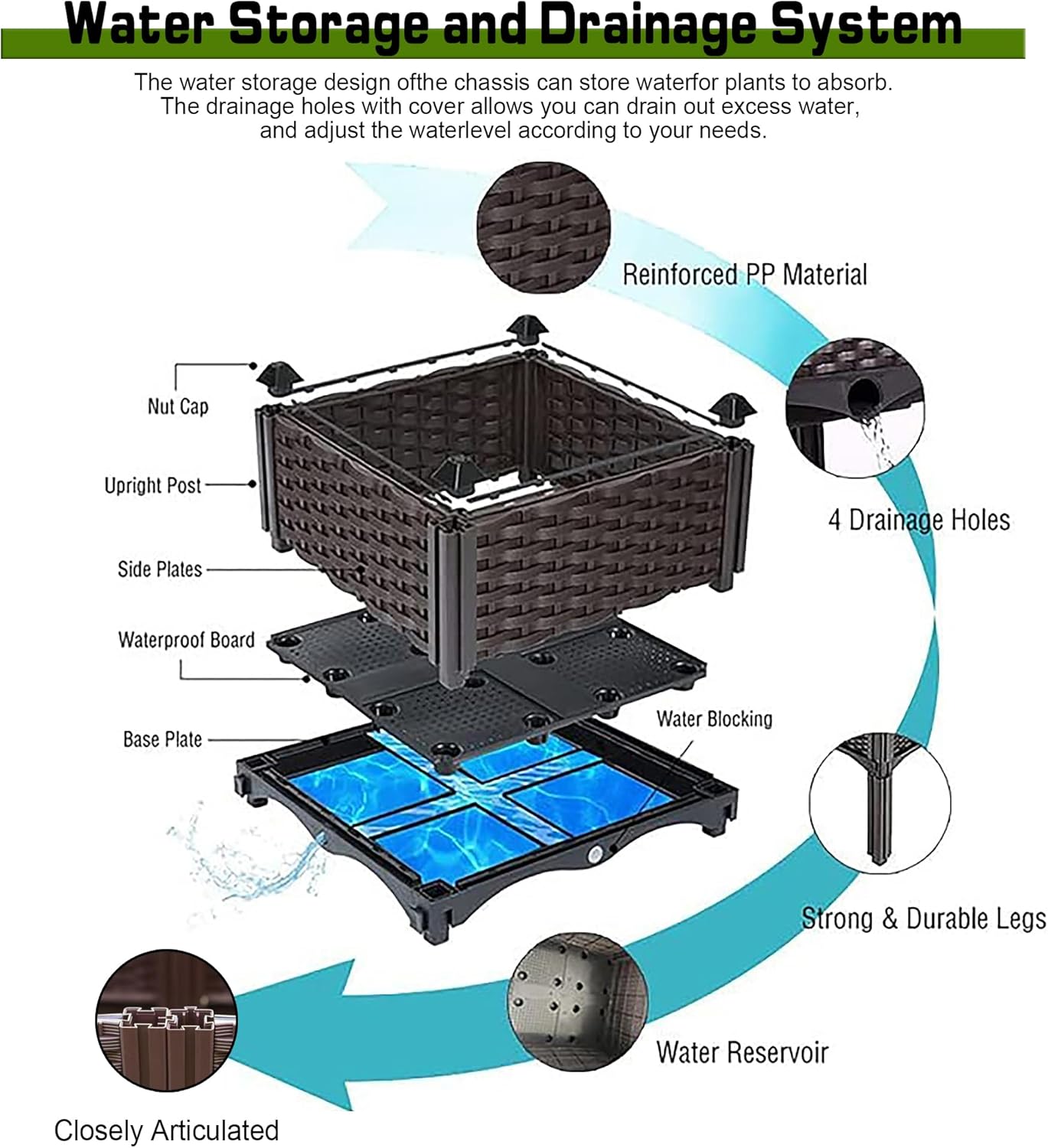 - 🌻【Durable Outdoor Growth Box】Our elevated planter boxes are made of reinforced PP material with a rattan pattern that is durable, lightweight, high load bearing, washable and reusable.