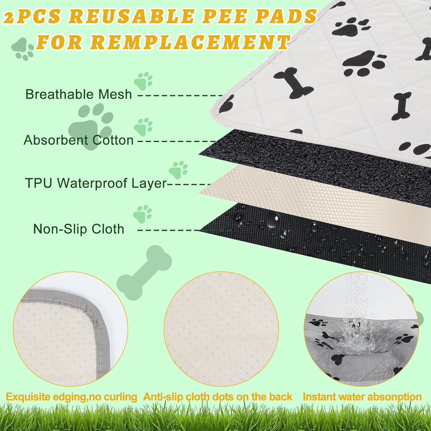 - ADVANTAGE 4 - 2PCS HEMMED ARITIFICIAL GRASS PADS : Strudy enough, chewing proof. It is convenient for you to wash a grass while the other is available for use