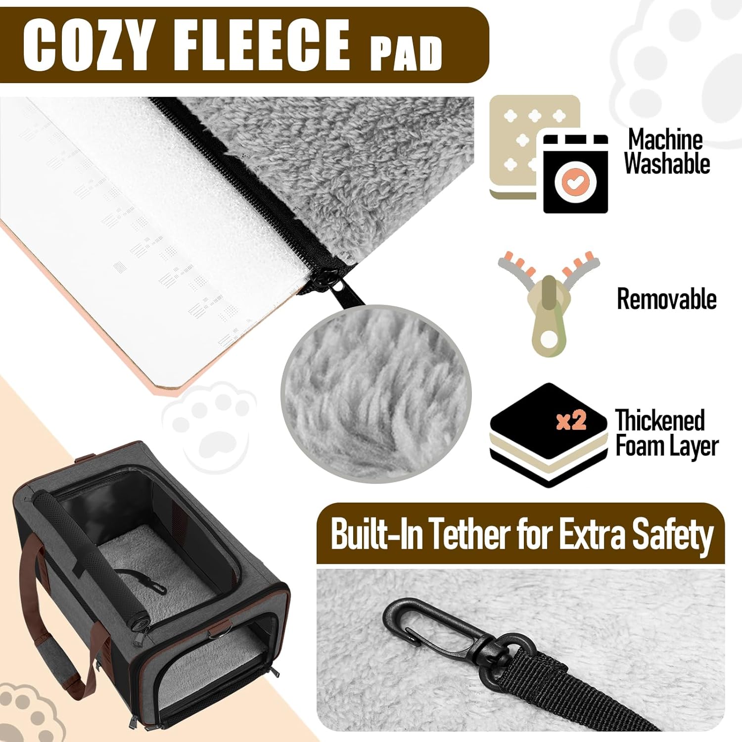 - Secured with auto-locking zippers, your pet can't escape easily by pushing against the zipper from the inside. An inner tether for extra safety. A reflective stripe on the side helps you feel at ease when you walking the dog at night