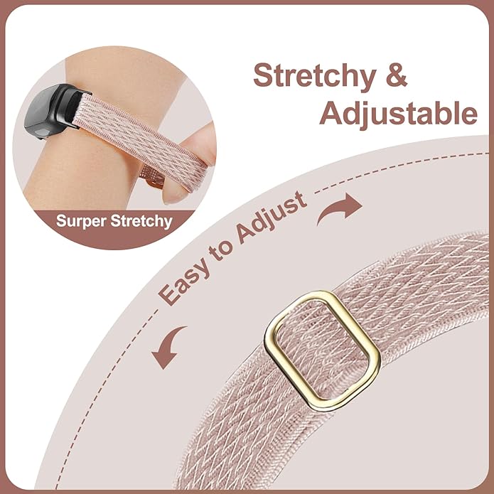 - 【Adjustable Freely】The stretchy nylon watch bands stretchy with metal loop buckle is easy to put on and take off, it can be adjusted to the right length without any tools. Suitable for 5.5"-9.5" wrists.