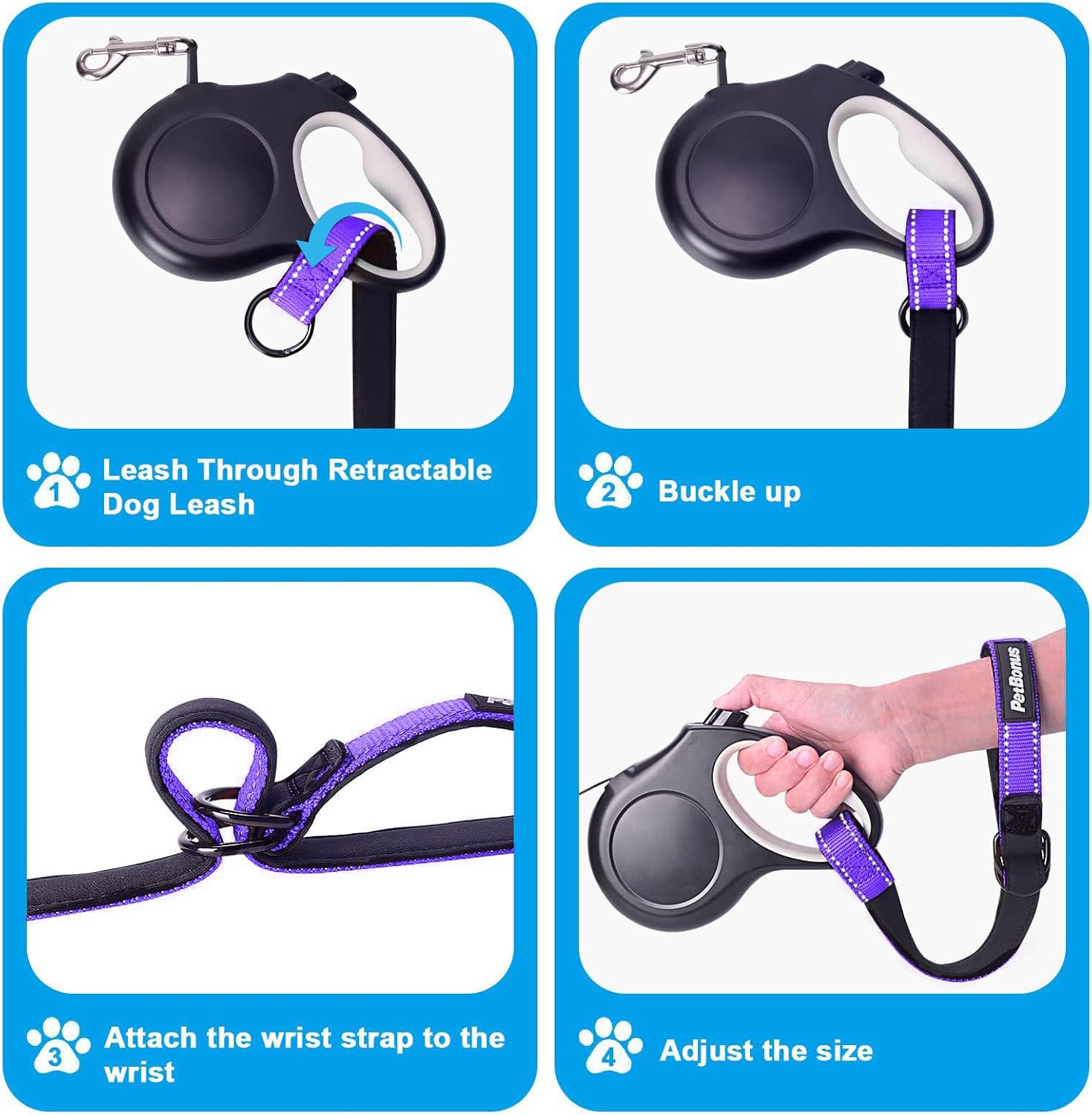 - Keep Your Dog Safe: Each retractable dog leash should be equipped with a PetBonus dog leash wrist strap to ensure the safety of walking the dog, which eliminates the worry that the leash falling from the hand will cause the dog to run away uncontrollably. (Retractable Dog Leash is Not Included)