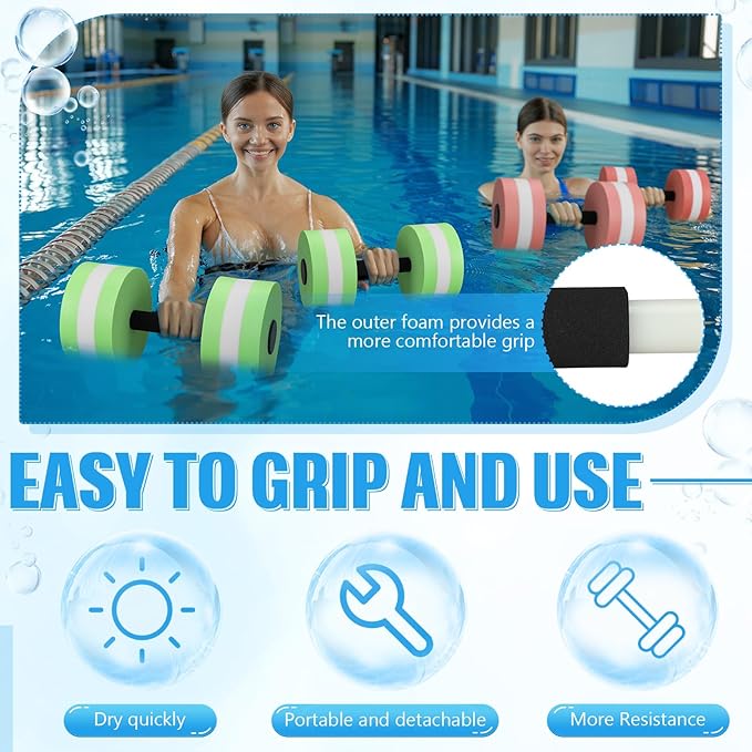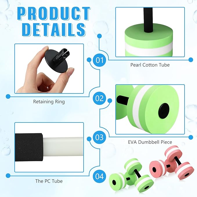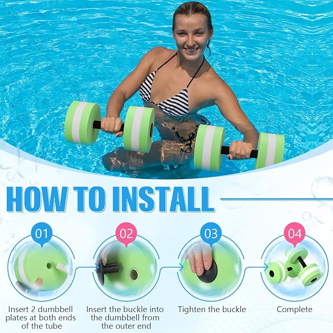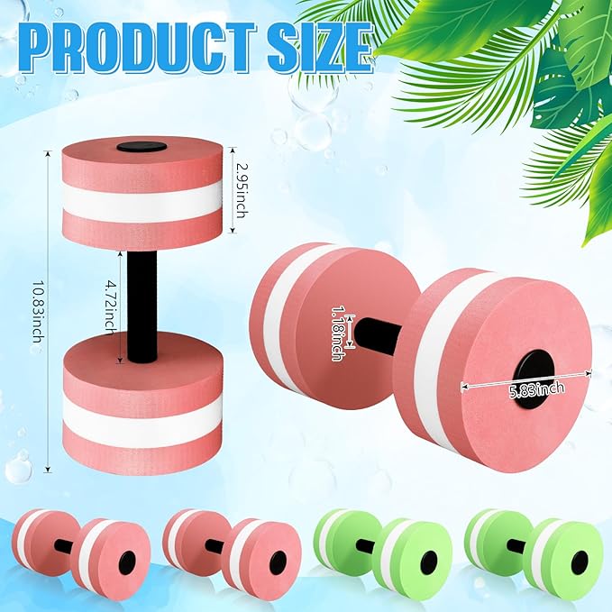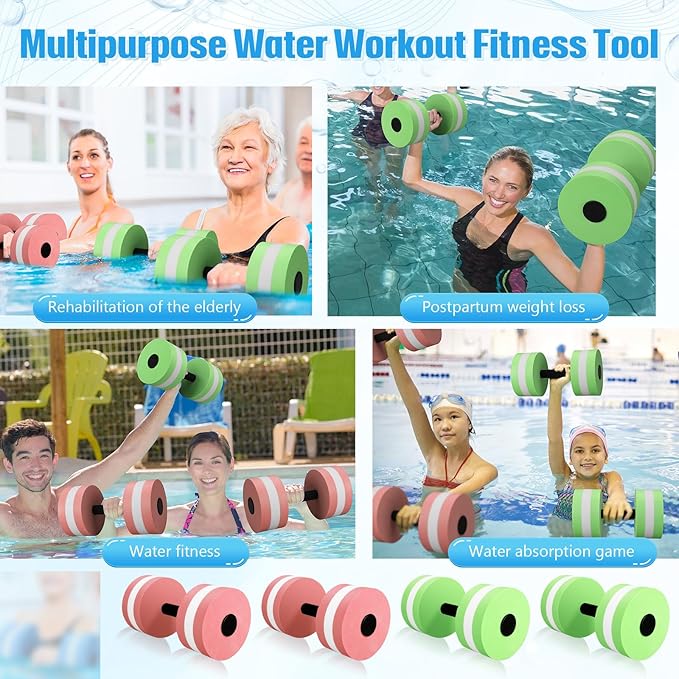 - Improved Water Workout Experience: the exercise and fitness dumbbells provide an overall muscle strengthening during water workouts, a fun addition to pool entertainment; Whether you're an adult, child, elderly person, postpartum pregnant woman, these pool dumbbells offer satisfactory resistance for building muscle endurance, increasing flexibility, and burning more calories, accommodating your needs for rehabilitation, weight loss, or water yoga sessions